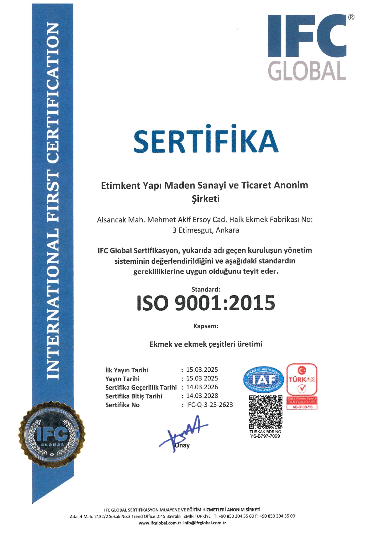 ISO 22000: 2018 VE ISO 9001:2015 Kalite Yönetim Sistemi aracılığı ile “Kaliteyi